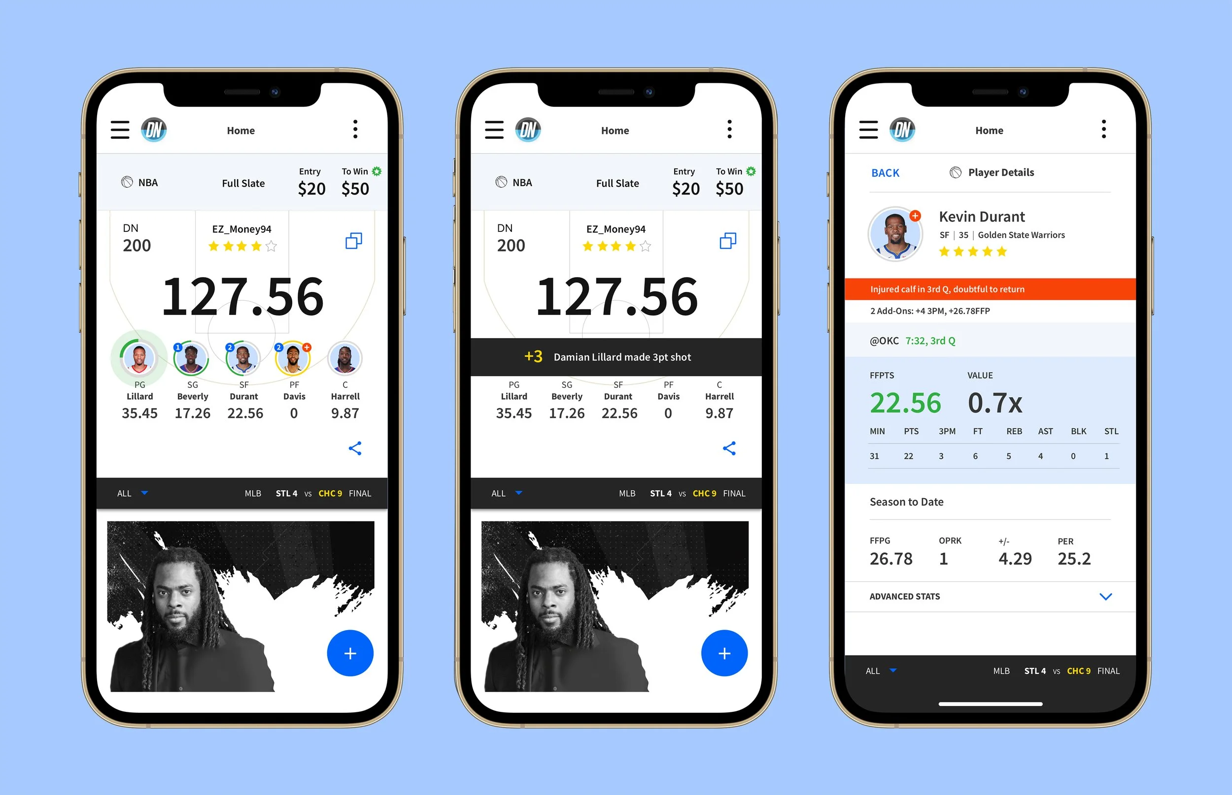 I led the design for Daily Number, a fantasy sports app co-founded by NFL star Richard Sherman. Users compete against a target score determined by an algorithm that analyzes the slate of daily games. The algorithm analyzes matchups and determines a star rating for each player. Lineups compete against the target score and prizes vary based on overall lineup strength.